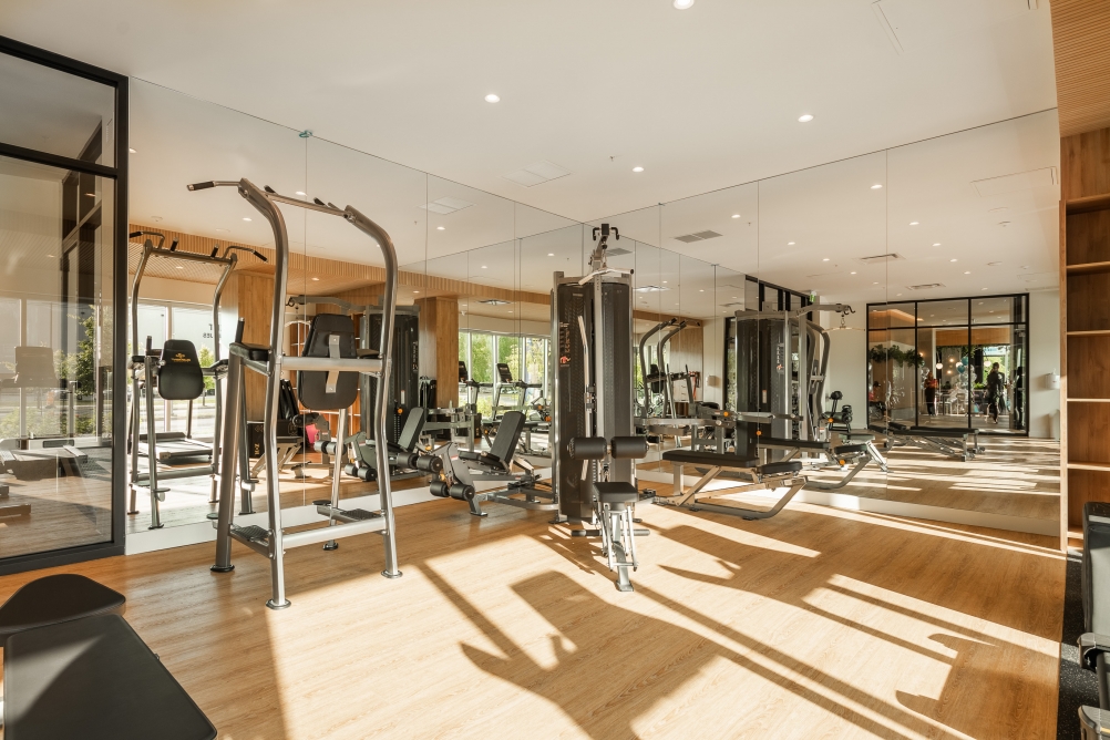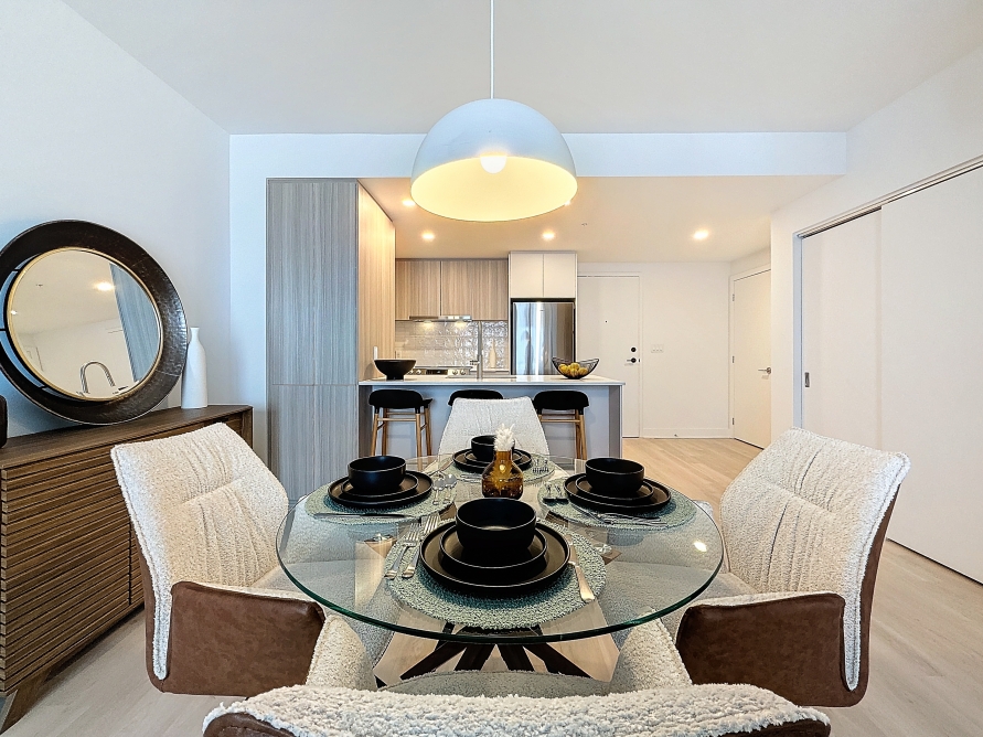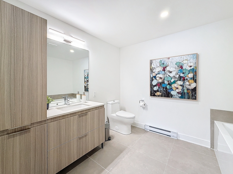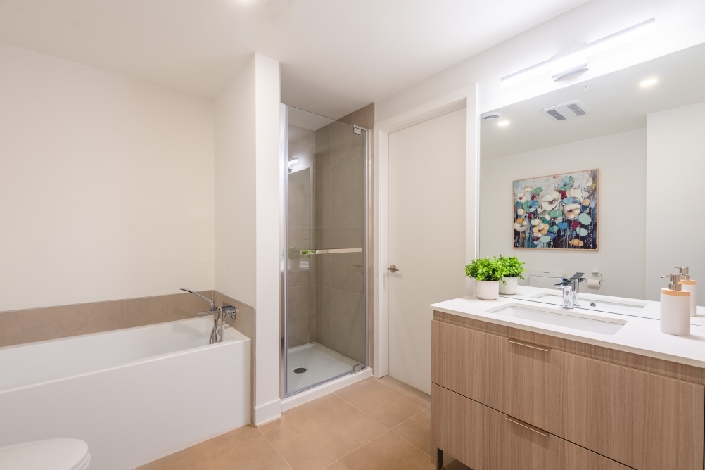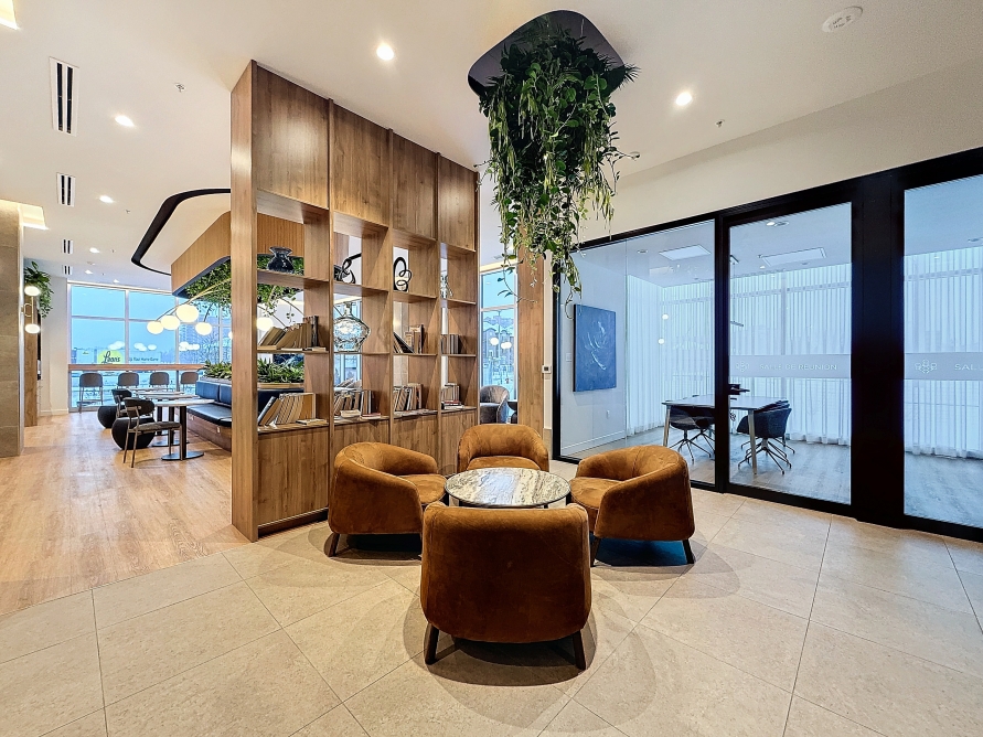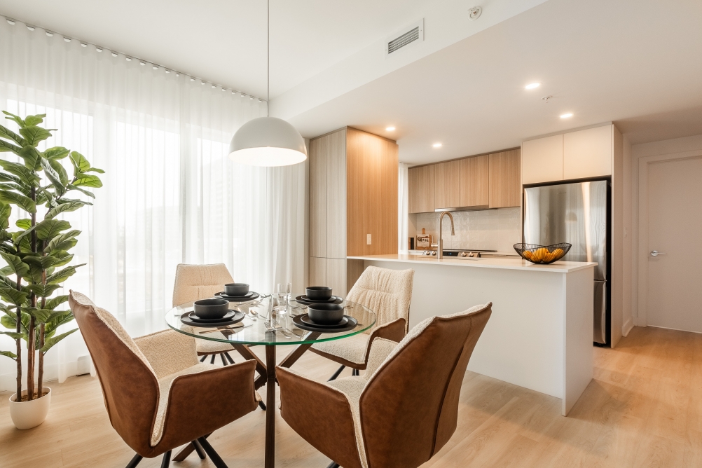 Chaque tour propose des espaces communs soigneusement aménagés. L’ensemble comprend trois halls d’entrée accueillants, deux salles d’entraînement entièrement équipées, une piscine intérieure, une cuisine communautaire, des espaces de cotravail, une aire de jeux pour enfants, un chalet urbain ainsi qu’une spectaculaire terrasse sur le toit. On y trouve également un vaste stationnement intérieur, des espaces de rangement et des supports à vélos.